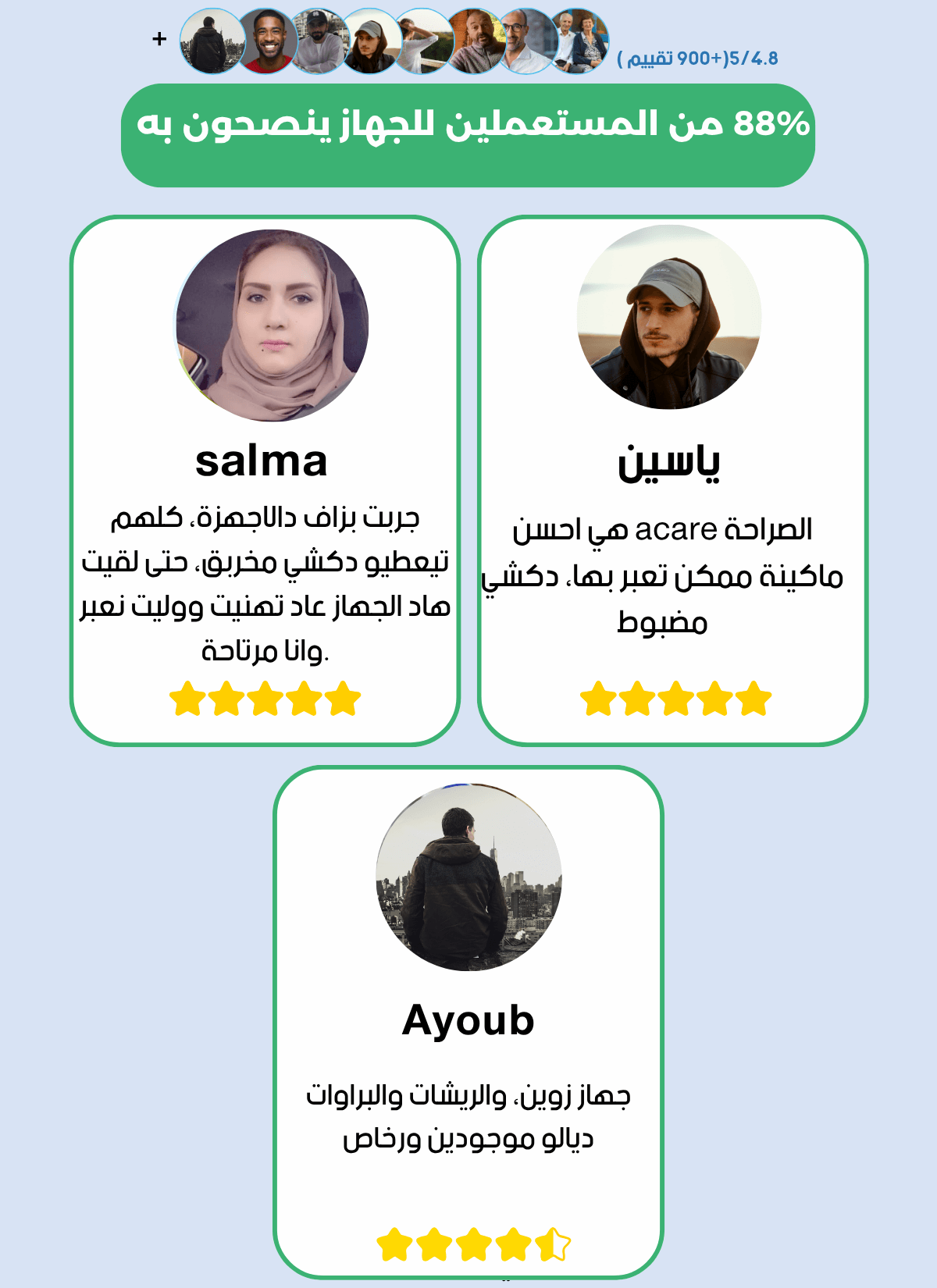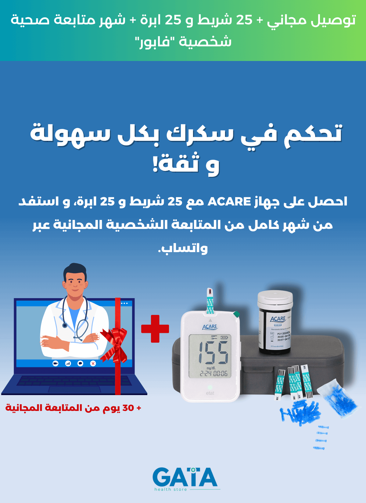 بعد كل شراء لاجهزتنا، ستحصل على اشتراك مجاني في خدمة "التتبع الصحي" لمدة شهر عبر تطبيق الواتساب مقدمة من طرف اخصائيين في المجال.