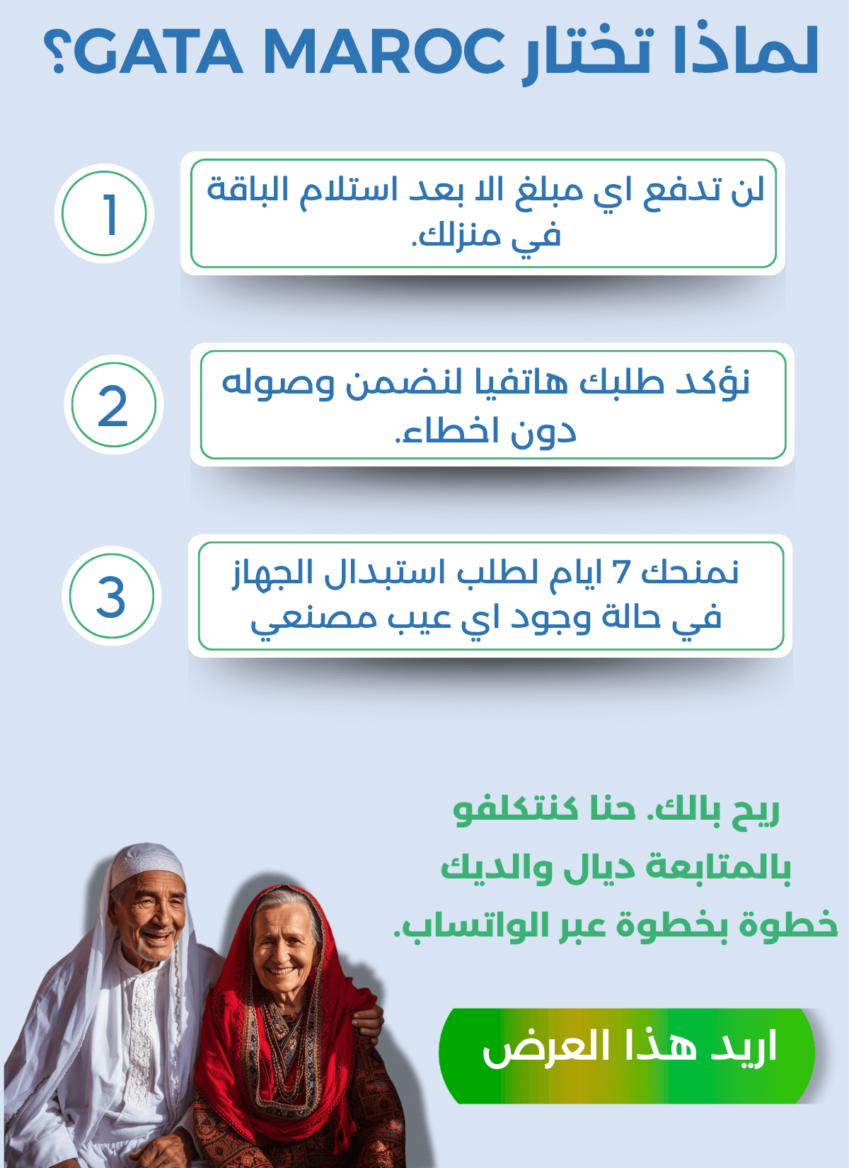 التوصيل إلى جميع مدن المغرب في مدة تتراوح بين 2 و5 أيام، مع إمكانية الدفع عند الاستلام بكل أمان وراحة.
